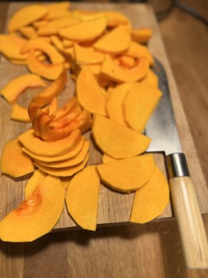 Sarah a trouvé sa recette sur un site anglosaxon. Voici le lien de cette Butter squash parmesan pour les puristes. J’ai fait une traduction à ma façon et j’ai adapté la recette à ma cuisine. Je l’ai faite en toute confiance et je vous conseille d’en faire autant. C’est vraiment bon et cela change de la courge rôtie ou du velouté.