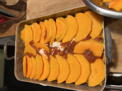 Tout cela pour dire que Sophie m’a envoyé la recette de Butternut parmigiana qu’elle avait eue de sa fille Sarah. Quand on aime la cuisine on aime la transmettre et c’est mission accomplie chez Sophie !