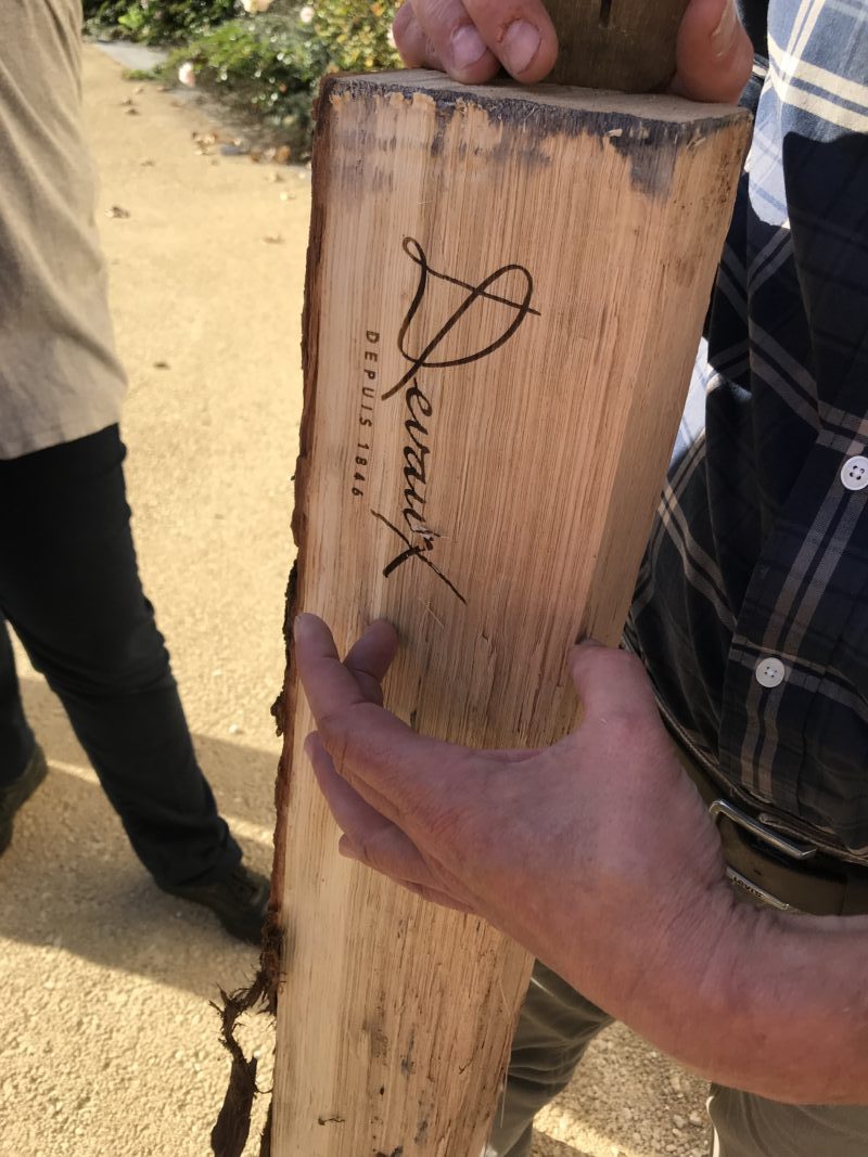 La politique de la maison est de choisir des chênes bios de la même région que les cépages. Après ils jouent sur la taille des grains. Ils recherchent des bois au grain fin. C’est-à-dire avec des cernes serrées, c’est-à-dire les ronds du bois qui donnent l’âge de l’arbre. Les morceaux sont conservés pendant 15 ans avant d’être découpés à la bonne taille.