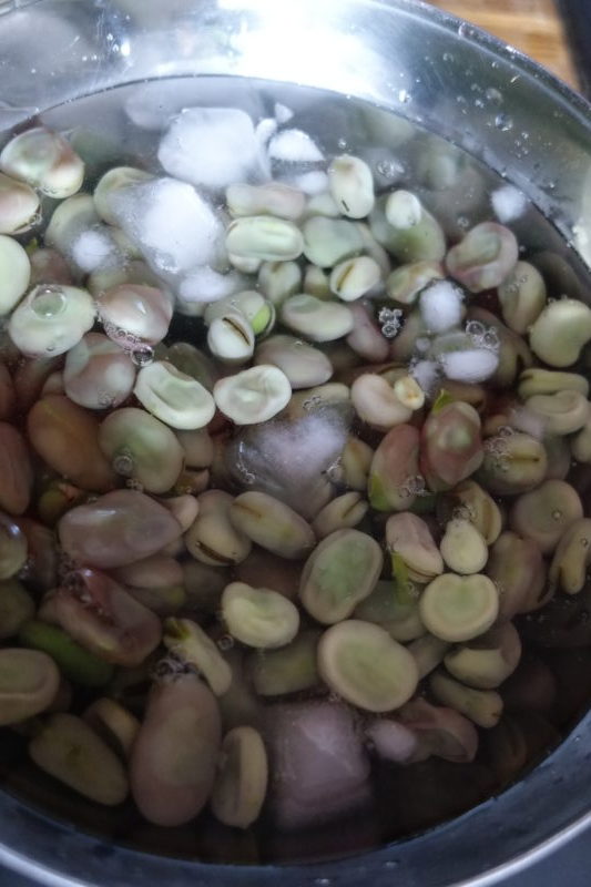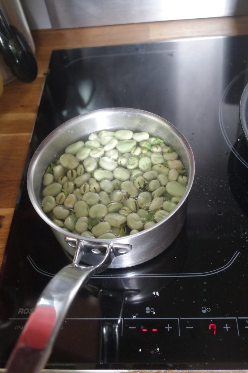 1 minute après la nouvelle ébullition, si les fèves sont grosses 2 à 3 minutes