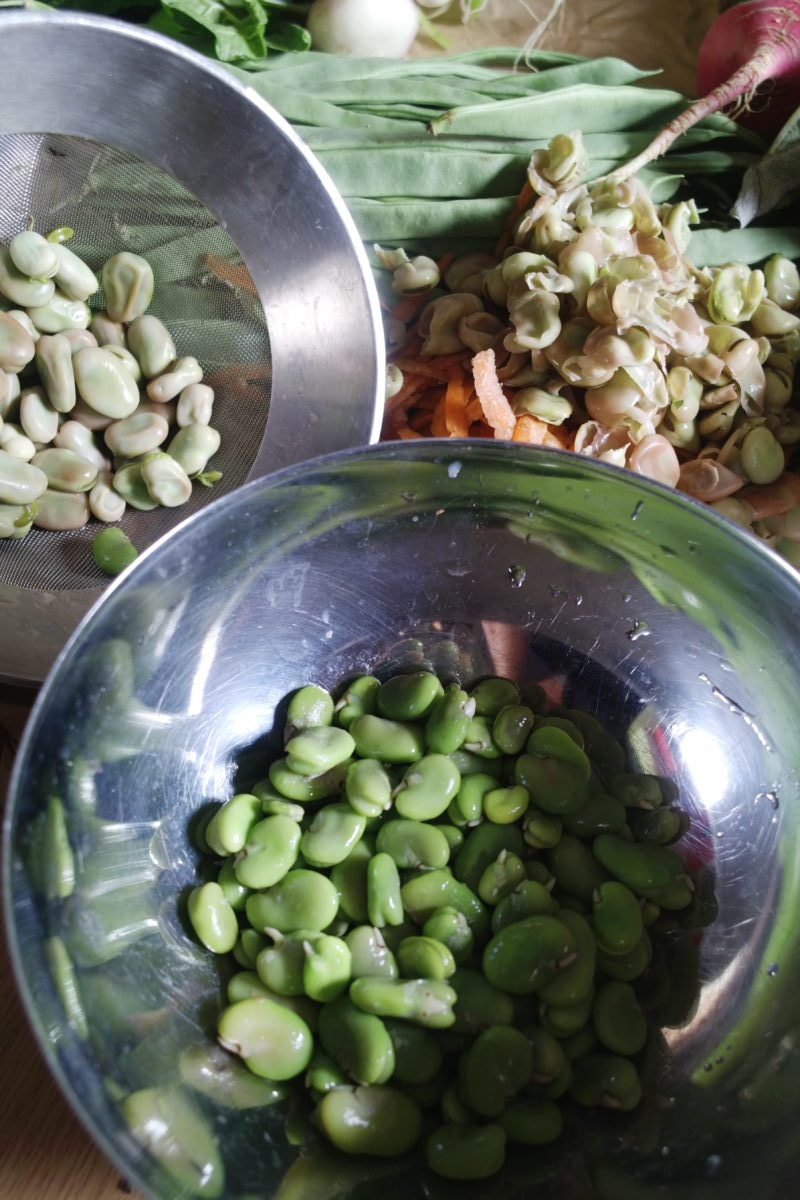 Pour les pressés, on trouve des févettes surgelées qui font l’affaire dans les recettes. Je vous conseille de faire le travail au moins une fois afin de voir la différence.