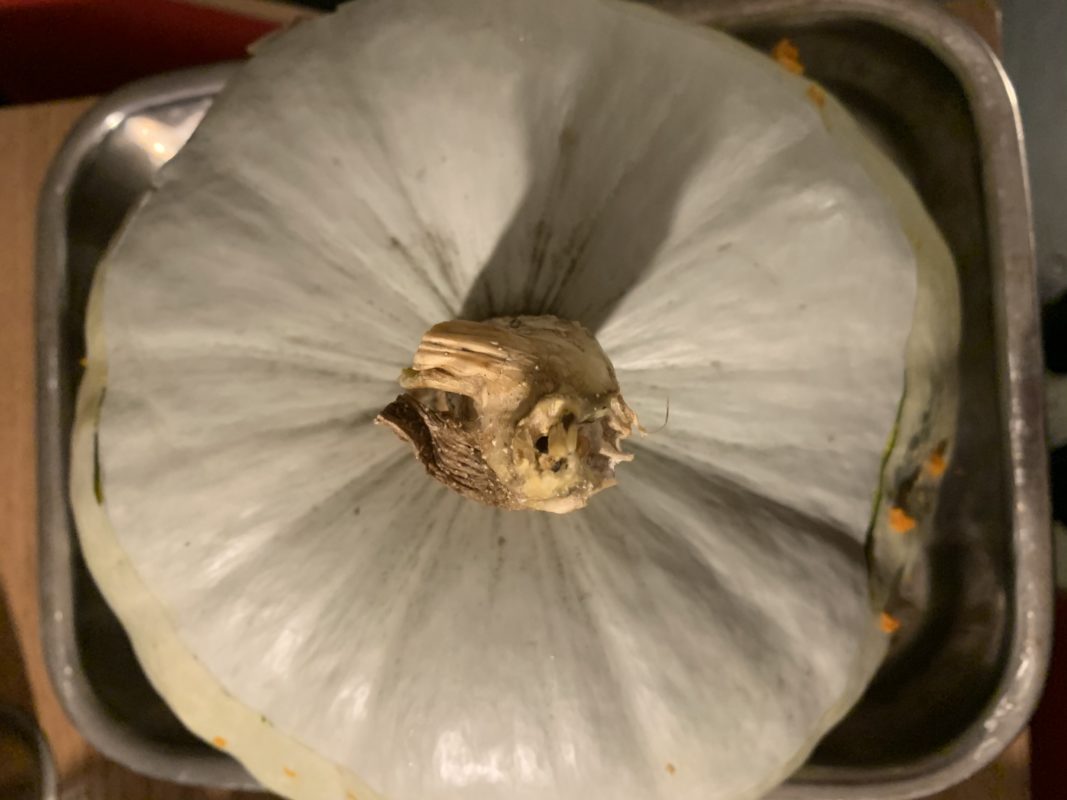 De mon potager urbain, j’ai récolté une énorme courge. La variété de ma courge est un potiron bleu de Hongrie d’au moins 4 kg. En ces temps de confinement, où nous sommes moins nombreux à la maison et où nous ne faisons plus de diners, je ne savais pas comment préparer ma courge. Mais hors de question de la laisser pourrir.
