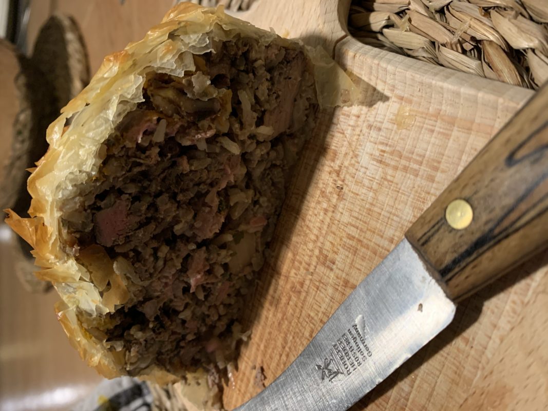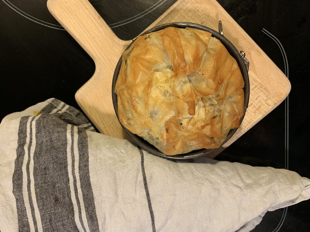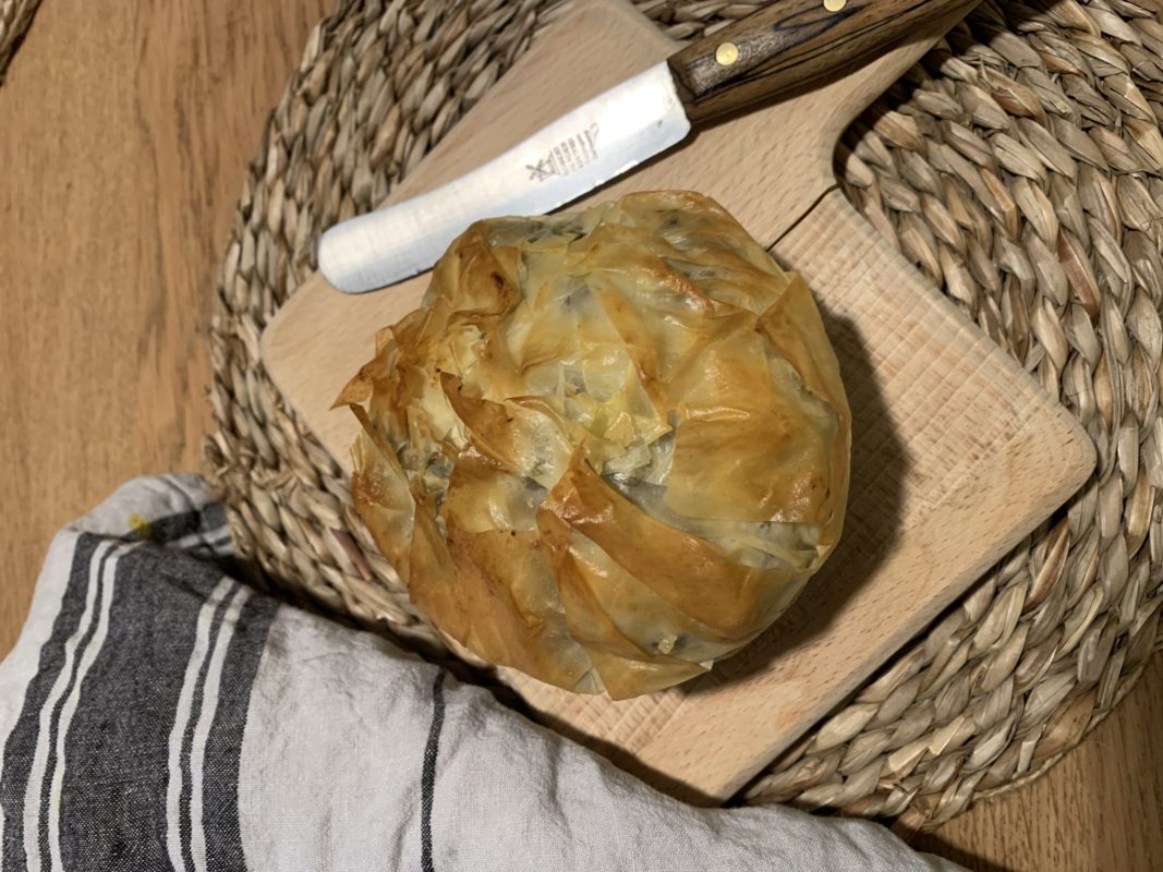 Quant à la farce, j’ai fait des petites tourtes dans de la pâte filo que nous avons dégustées avec une salade de chou blanc et de concombre.