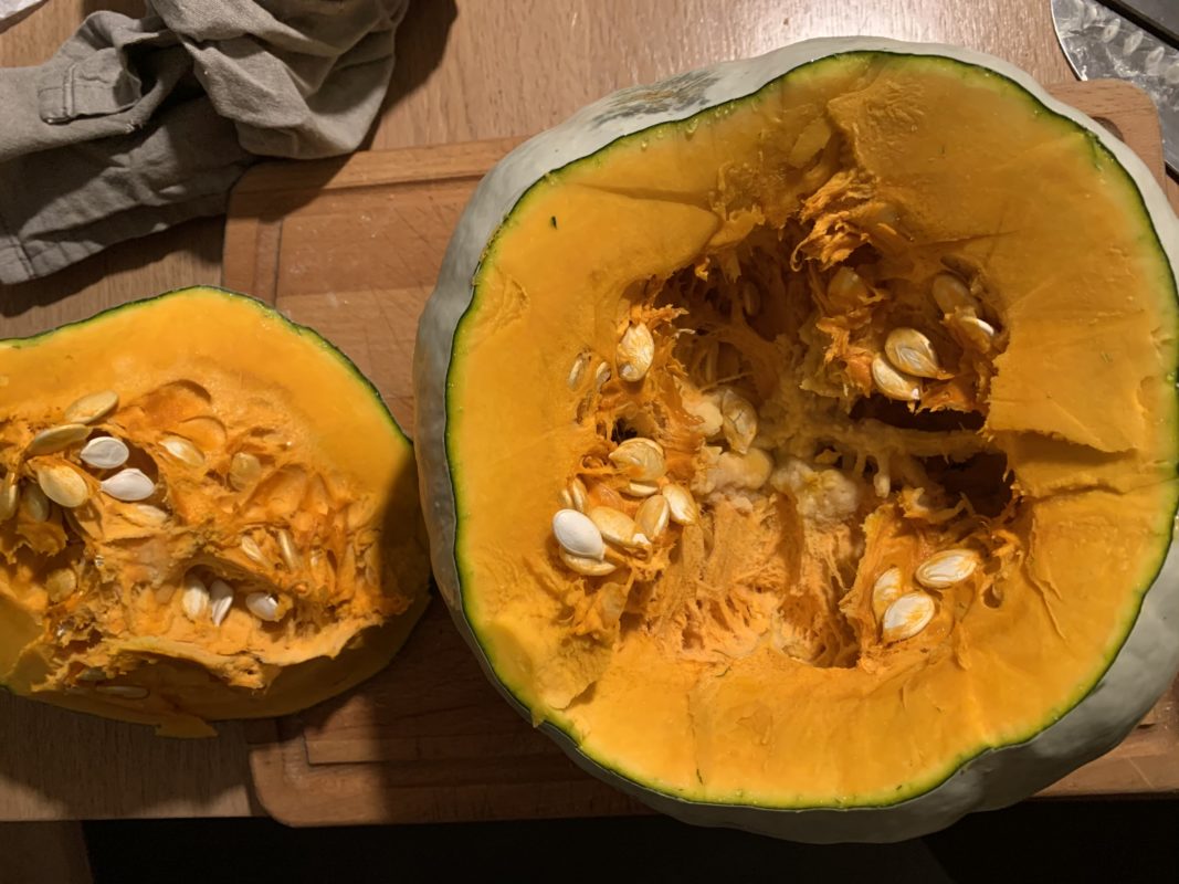 Cette courge est très dense et épaisse, elle a un goût un peu sucré, très doux. J’ai même gardé les graines pour les replanter au printemps prochain.