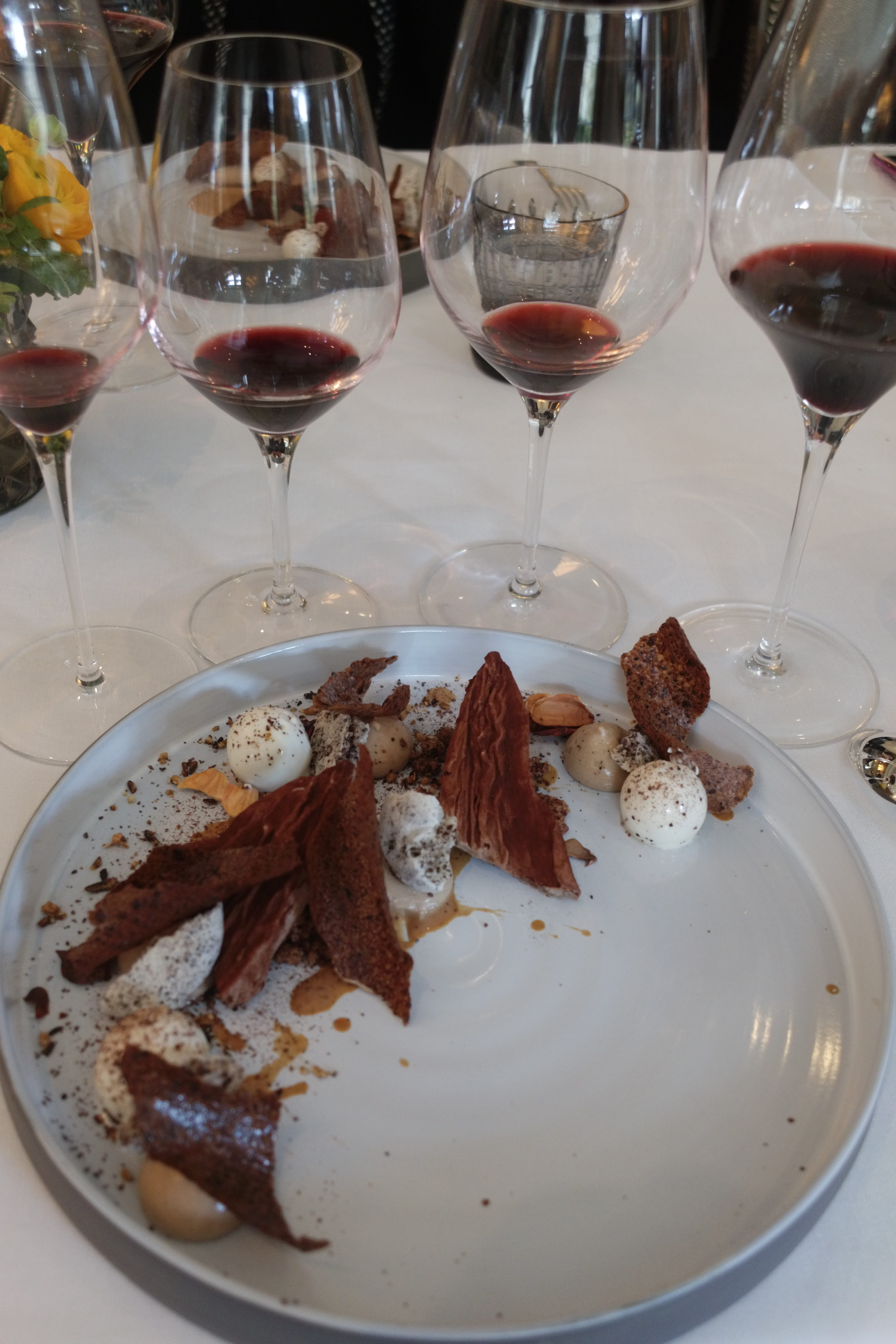 Il était temps de passer au dessert, une belle ode au chocolat. Dans nos verres est apparu le 2010. Un vin qui a vécu des moments difficiles comme le 2017 pourtant aujourd’hui il est facile à boire.