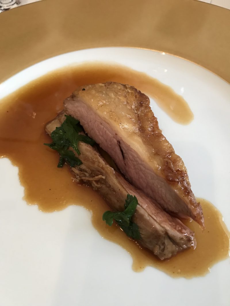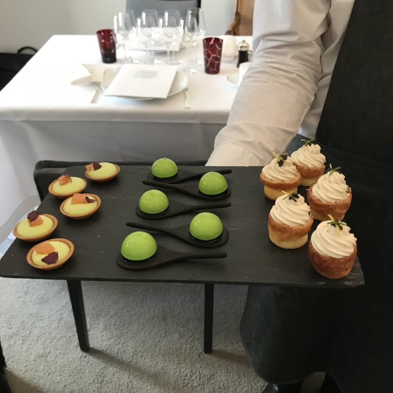 Le cadre de ce restaurant est prestigieux, un peu en dehors du temps. Il se trouve dans un hôtel particulier majestueux avec son jardin en plein cœur du 8ème arrondissement. L’an dernier, le restaurant a vécu une petite révolution avec l’arrivée d’un jeune chef, Mathieu Pacaud qui a repris le flambeau laissé par Jean-Pierre Vigato. Pour la petite histoire, dans ma famille, il y avait toute une légende autour de la tête de veau de chez Apicius servie avec une vraie tête. Nous n’avons pas mangé ce plat peu consensuel mais nous nous sommes régalés. Je vous raconte le menu.