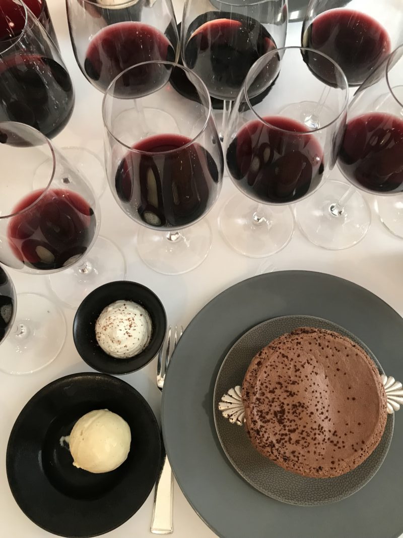 En dessert, nous n’avons pas résisté au soufflé au chocolat servi avec une crème anglaise à glisser à l’intérieur et une boule de glace. Même si le chocolat s’accorde avec le vin rouge nous avons dégusté un Chantegrive Cérons de 2015. Un vin sucré qui devient rare et est en voie de disparition.