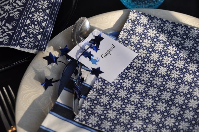 Blue, Bleu, sans blues ni bleus à l’âme juste bleu pour la déco et le plaisir des 27 paires d’yeux présents pour partager les retrouvailles familiales et mes « délires chouchoutesques » .