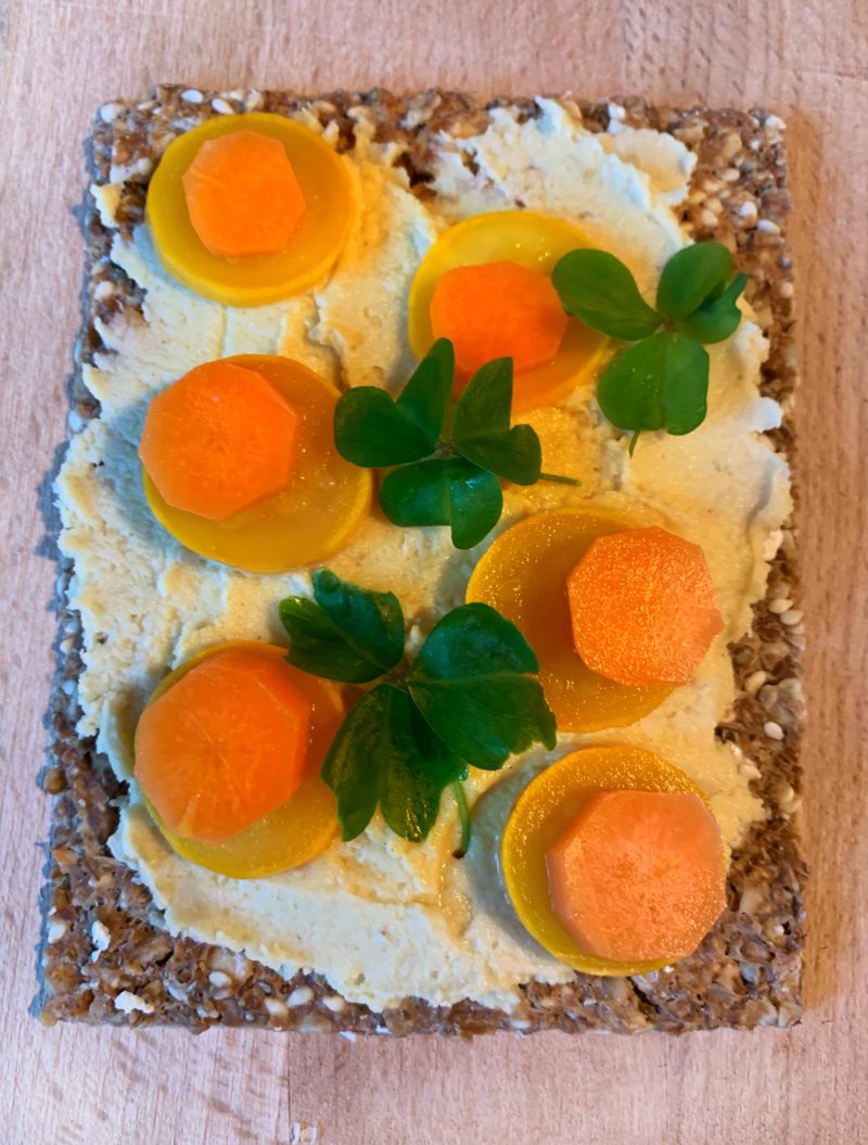 J’ai ouvert mon bocal, j’ai senti et tout avait l’air normal. J’ai donc goûté et j’ai retrouvé les saveurs dégustées chez les chefs. Je me suis amusée à réaliser cette tartine graphique et cette salade colorée.