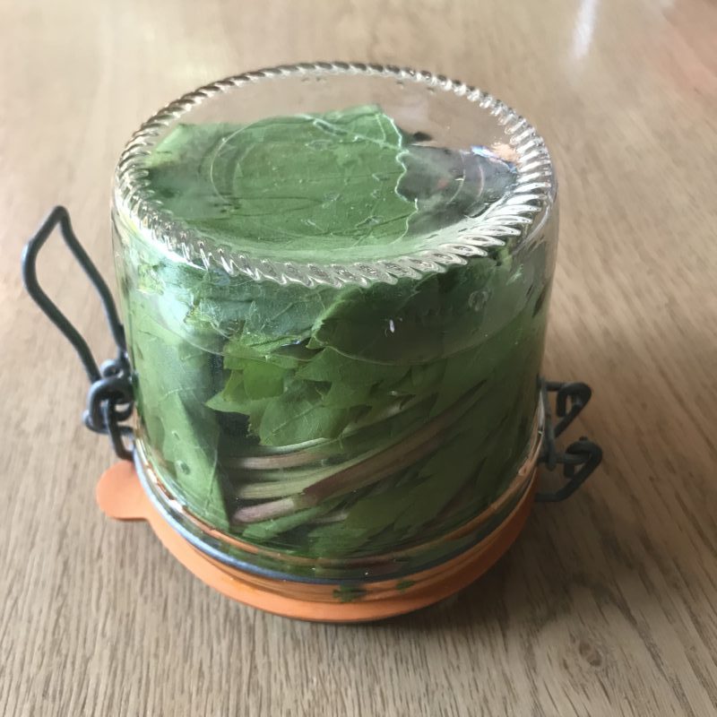 En matière de fermentation, je fais confiance à Marie-Claire de Ni cru ni cuit et j’ai suivi sa recette. Il faut savoir être patient , les feuilles de vigne surissent en 3 semaines au moins.