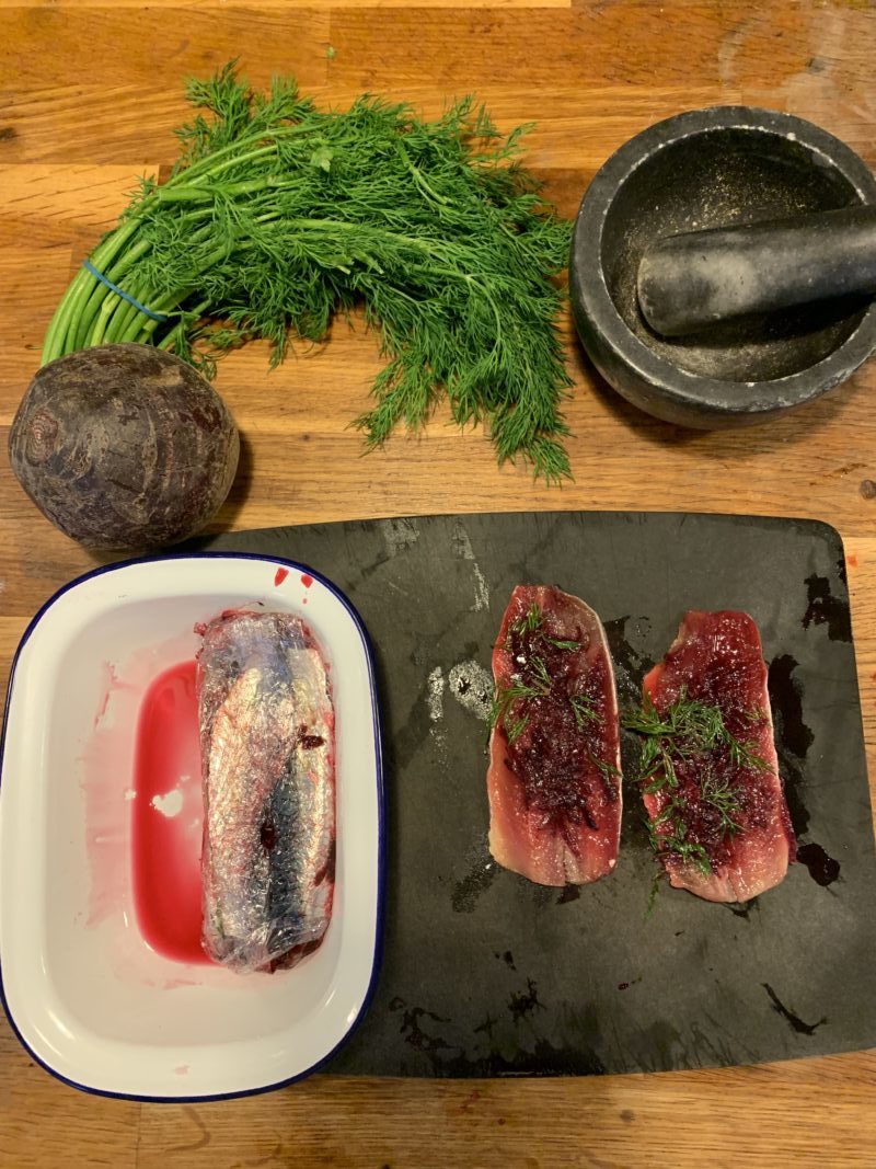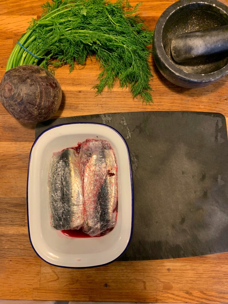 Filets de sardine méthode gravad à la betterave