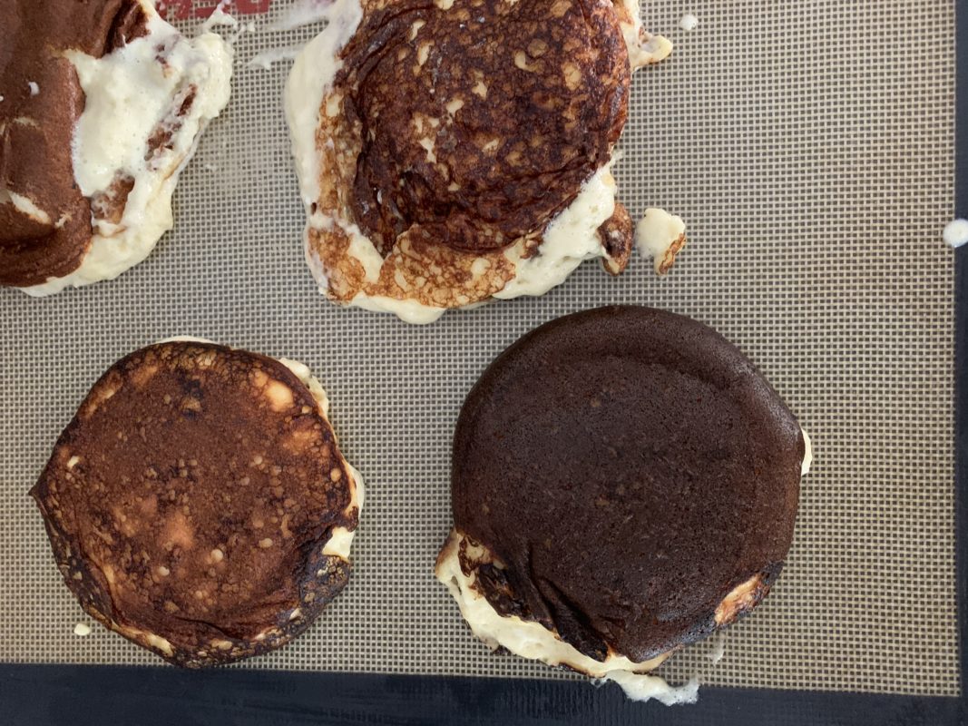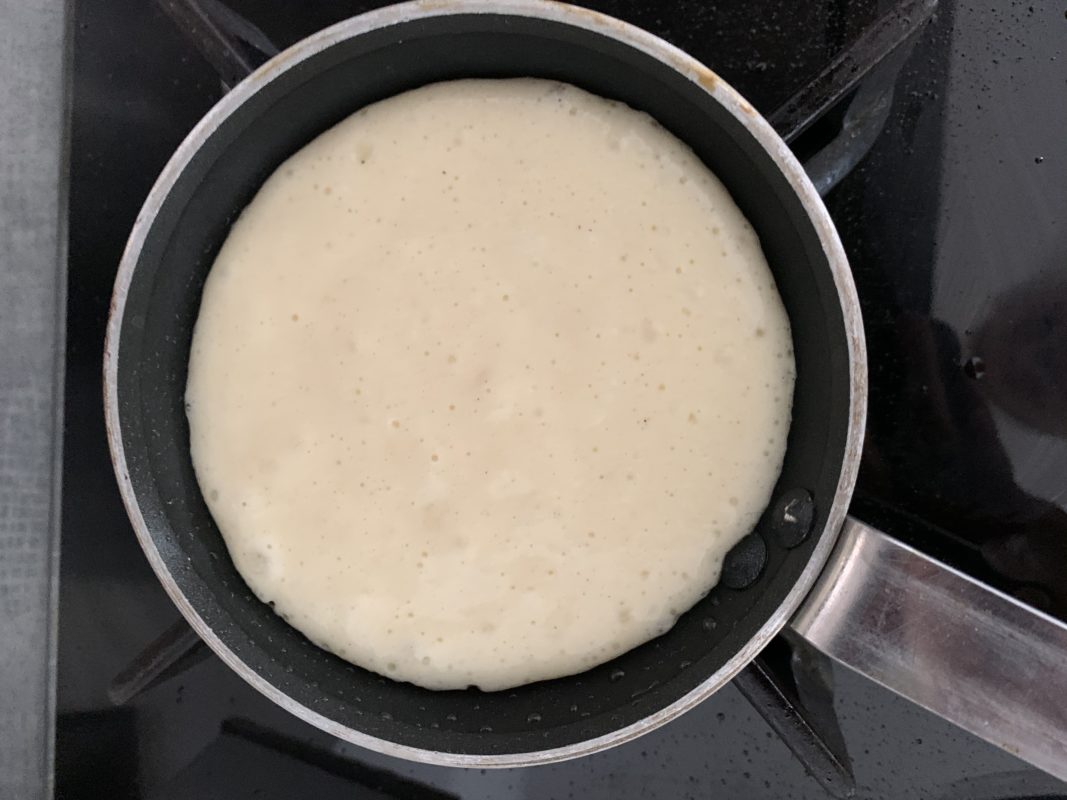 En effet, il faut mettre l’une sur l’autre deux crêpes côté non cuites. C’est ce qu’il permet de faire gonfler la crêpe finale.