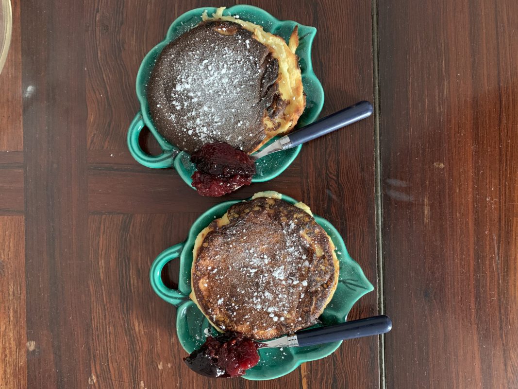 Quand la plaque est pleine, faire cuire les crêpes au four pendant 7 à 8 minutes le temps qu’elles montent. Si vous avez préparé ces crêpes d’avance laisser 1 à 2 minutes de plus. Dès la sortie du four saupoudrer de sucre glace et servir avec une confiture de votre choix, nature.