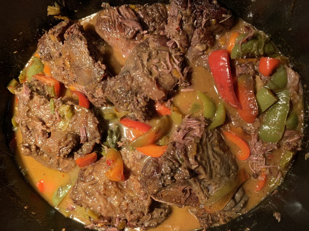 Mais pour avoir le goût des poivrons, il ne faut pas les cuire aussi longtemps que la viande et les faire revenir à part. On peut changer de légumes en fonction des saisons. Je vous conseille de les ajouter plutôt en fin de cuisson.