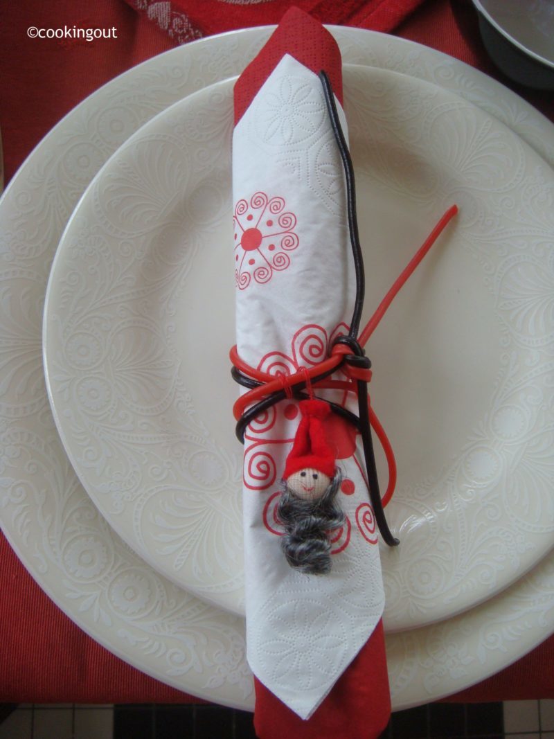 Pour apprécier le julshinka, il faut une belle table de Noël typique. En Suède, il faut du ROUGE, du rouge et du blanc. Une petite touche de vert, de dorée ou d’argent voir de noir est possible mais la couleur fédératrice du Noël suédois est le rouge. Tous les Noëls que j’ai passé là bas étaient sous le signe du rouge.