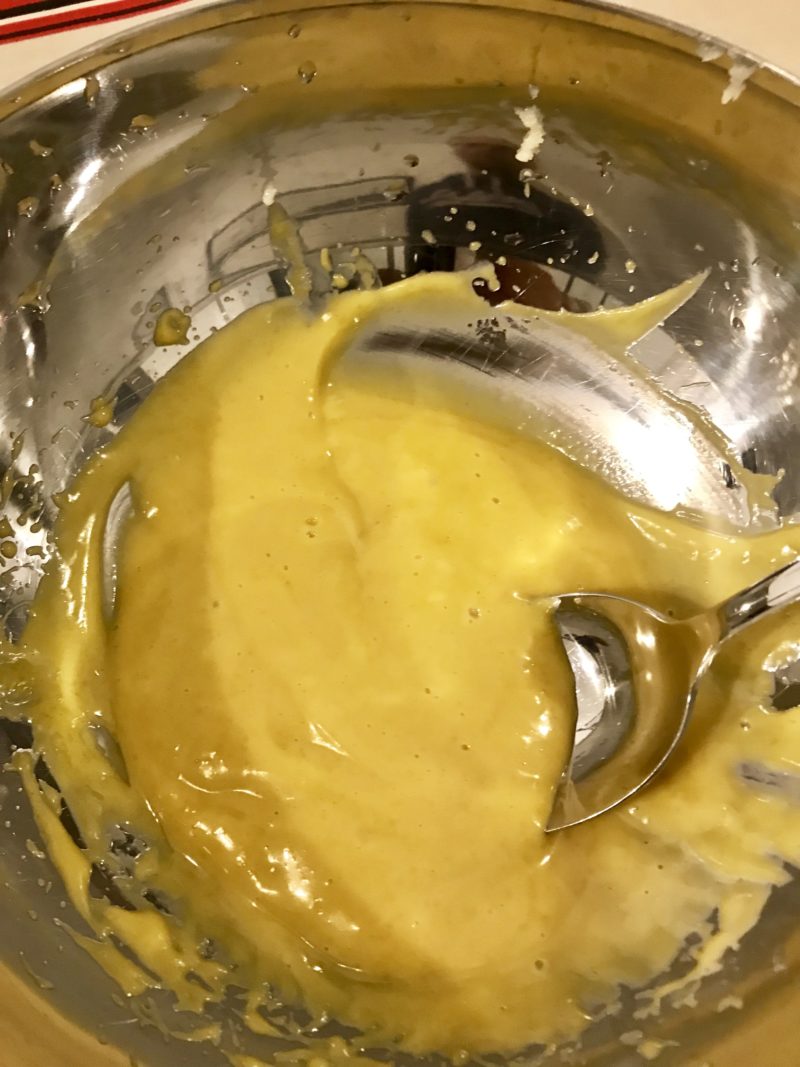 Préparer la mayonnaise à l’ail. Fouetter le jaune d’œuf avec la moutarde, ajouter l’huile petit à petit tout en fouettant.