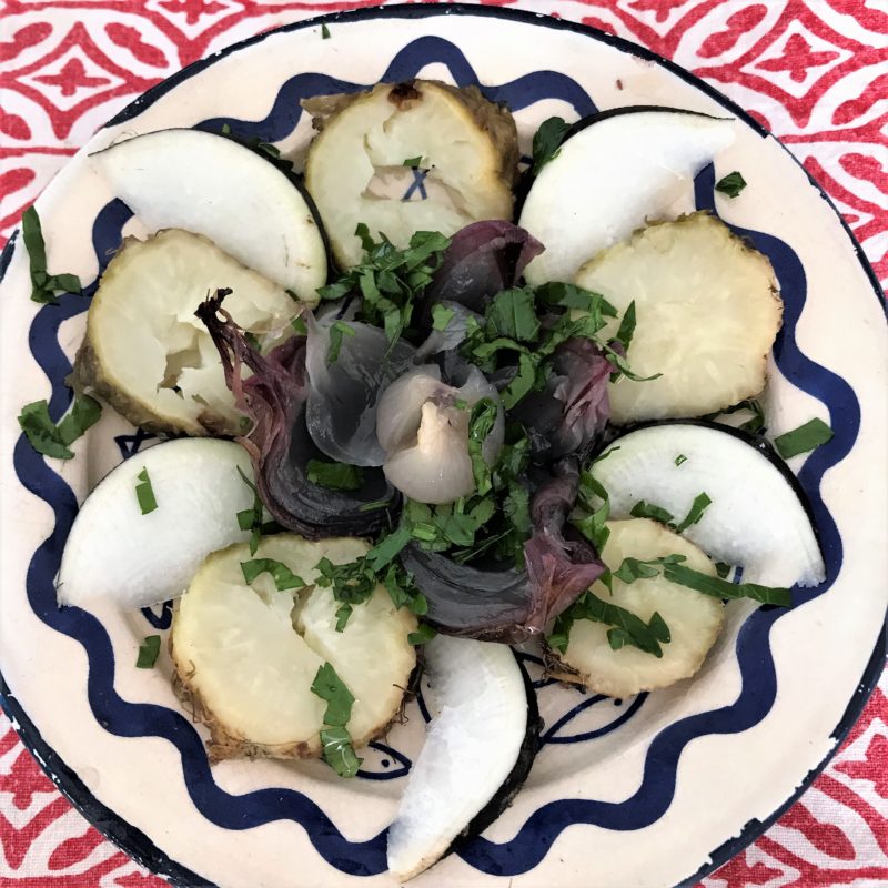 Crudités d’hiver colorées aux radis blanc, red meat, green meat et chioggia