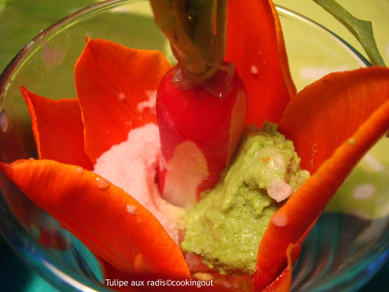 Le radis cuisiné de 3 façon vient farcir une tulipe