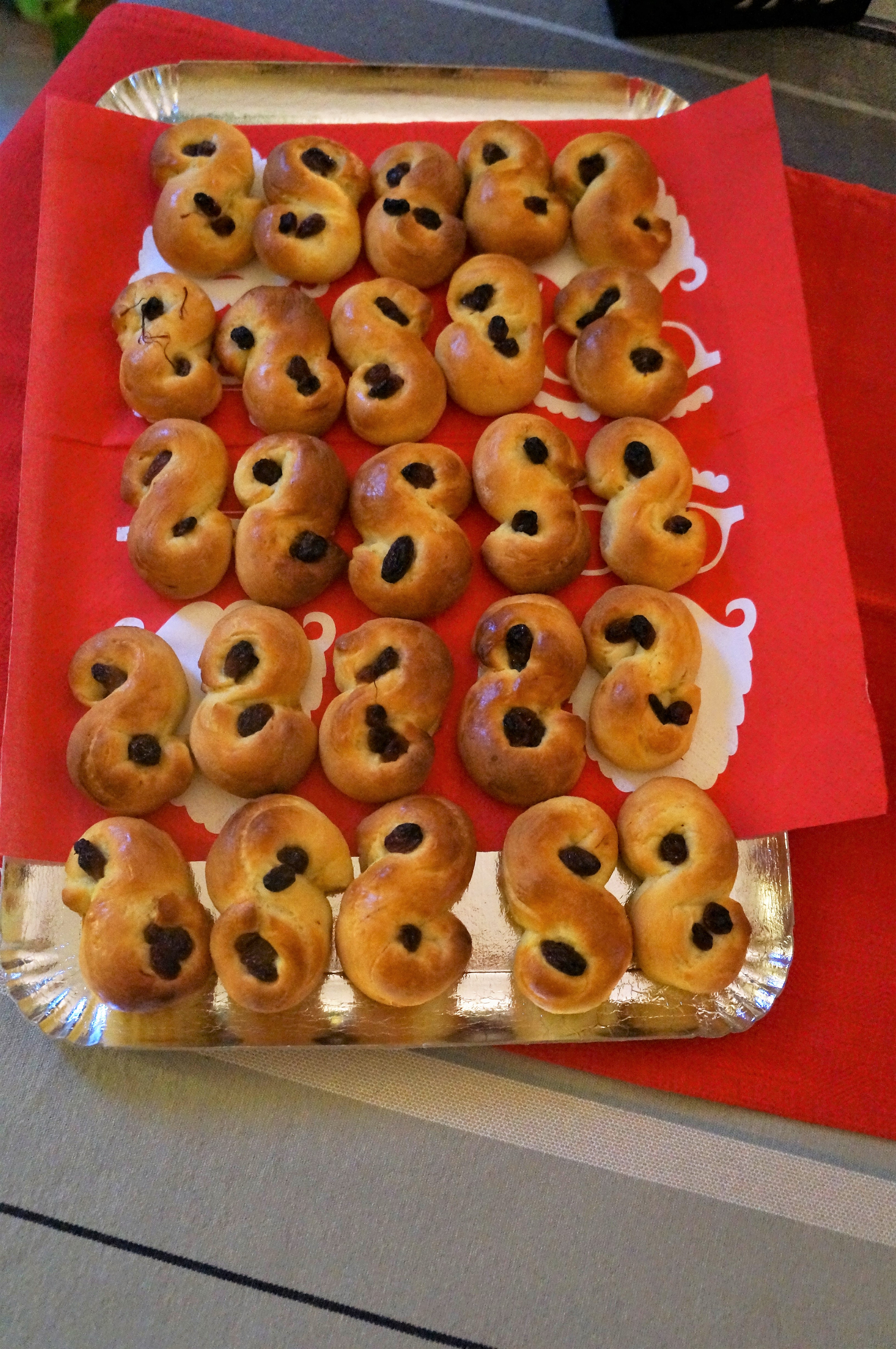 En attendant, cette année j’ai fait mes lussekater pour la Saint Nicolas. Ce qui me permet de vous donner ma dernière recette pour que vous soyez fins prêt pour le 13 décembre ! Cette année la Saint Nicolas, a une saveur nostalgique pour toute ma famille. C’est pourquoi avec ma sœur nous avons préparé un grand buffet de douceurs pour une bande de jeunes et moins jeunes en l’honneur de mon neveu.