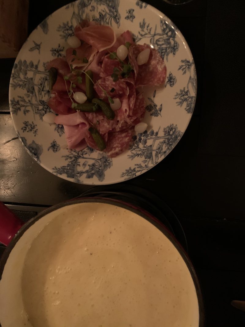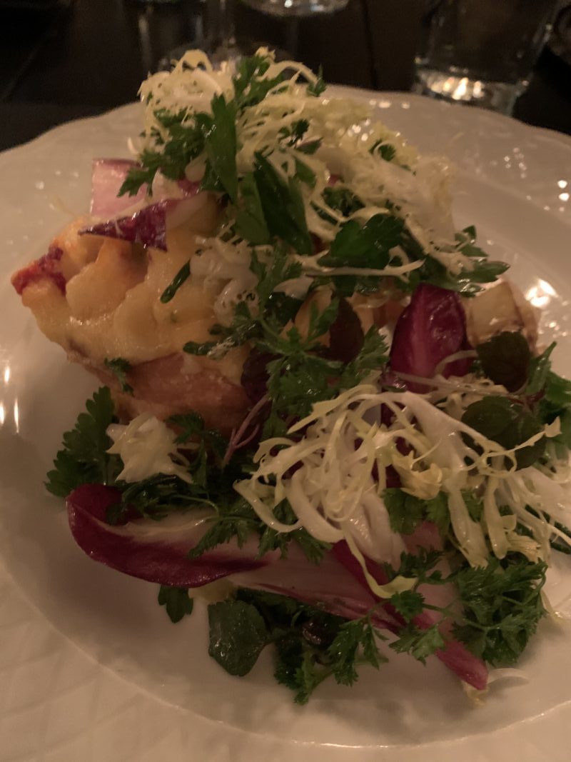 La spécialité de la maison étant la fondue savoyarde, les gars ne se sont pas défilés. Après la poutine, je voulais manger plus léger. Donc, j’ai choisi un vol au vent au homard, un vrai régal. Le vol au vent a l’air d’être une recette très tendance dans cette contrée, je l’ai vu sur pas mal de cartes…