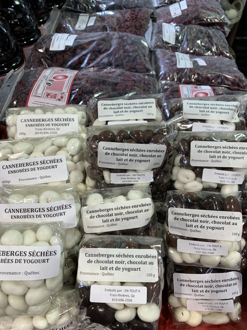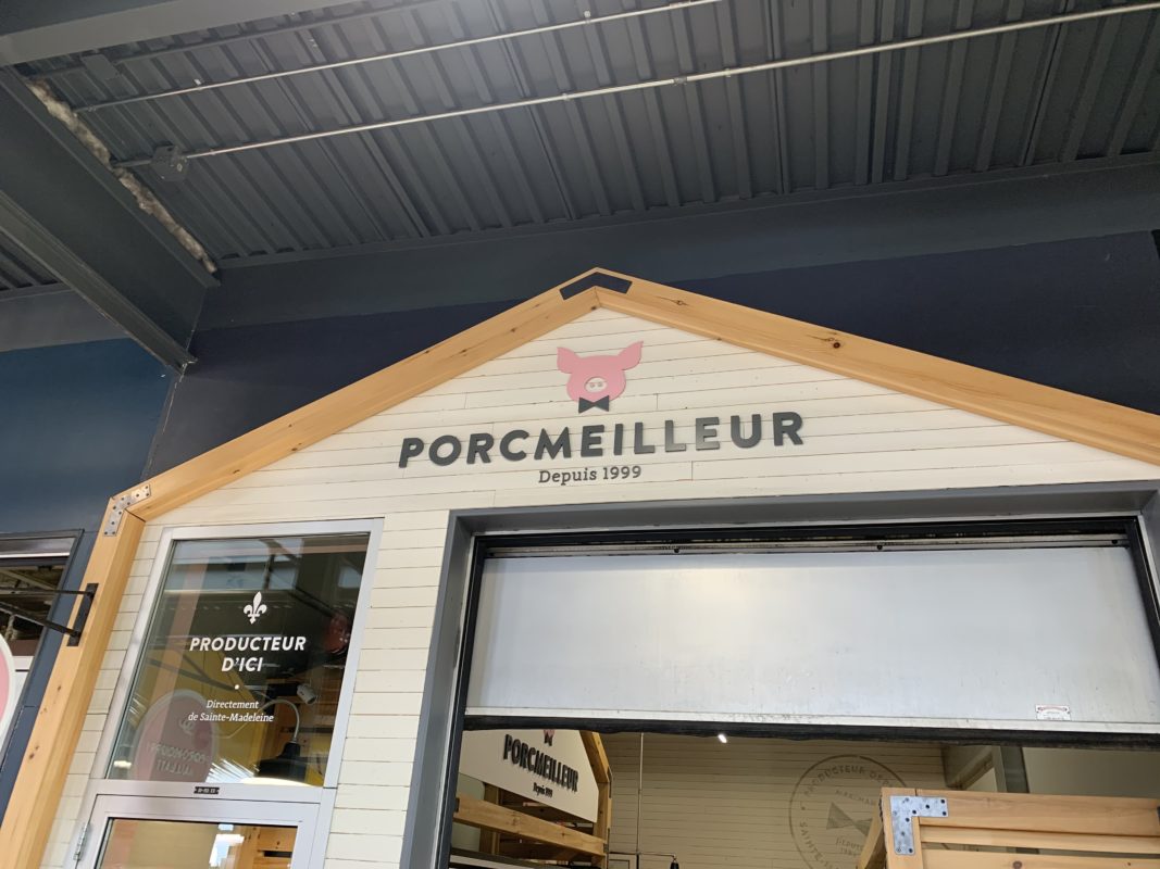 Le lendemain après un petit dej de l’hôtel décevant, nous sommes partis direction le nord de Montréal vers le marché Jean Talon. Un lieu très agréable avec des producteurs engagés et des produits très appétissants. Je vous invite à regarder les enseignes pleines de poésie humoristique à la canadienne.
