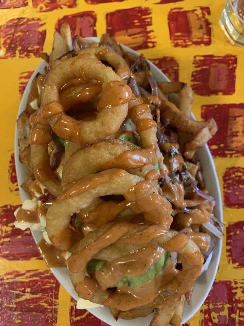 Depuis que j’ai animé un atelier pour l’office du tourisme québécois chez Marmiton, j’ai envie de goûter à la poutine. Nous n’avions pas pu en faire une pendant l’atelier pour des raisons de temps et de matériel. Même si l’on m’avait prévenue que la poutine se mangeait aujourd’hui avec plein de toppings différents, j’ai été intriguée par le nombre de variantes proposées. Pas light du tout mais réconfortant après quelques heures de marche dans le froid! Je n’ai pas réussi à finir la mienne surmontée de guacamole, d’oignons fris et de bacon. Ceci dit, après cette première expérience où j’ai donc coché la case poutine, j’ai gardé mon appétit pour d’autres expériences. Mais depuis, je surveille sur les cartes des restaurants et il n’est pas rare de trouver une poutine revisitée avec moult variantes.