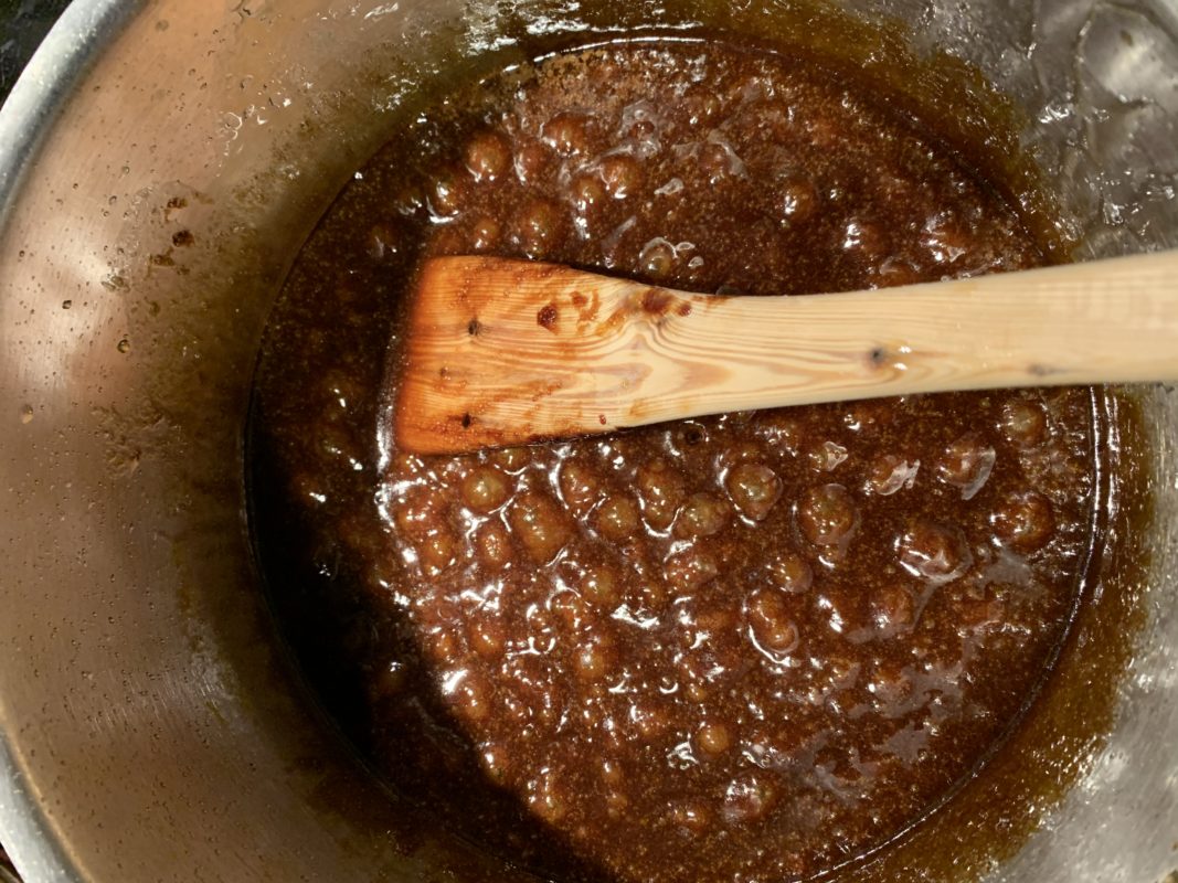 Tout d’abord, on met de la mélasse de canne. C’est un sirop très épais et très foncé au goût prononcé de réglisse. Les épices que l’on ajoute, masquent un petit peu le goût de réglisse. Par rapport à la recette que j’avais faite l’an dernier, on ajoute un œuf et on ne met pas de crème. Du coup je trouve que la texture est plus agréable en bouche. De plus, j’ai l’impression qu’ils gardent un peu plus de moelleux et sont moins friables.