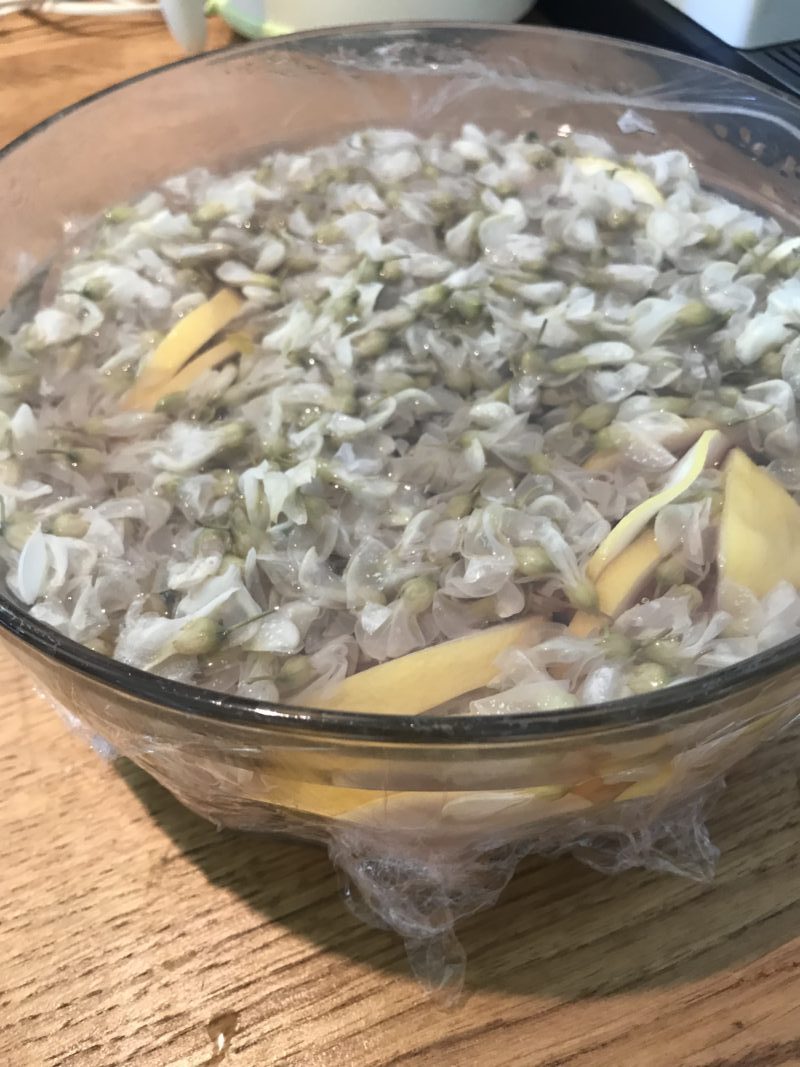 Cela faisait très longtemps que j’avais envie de faire du sirop de fleurs d’acacia, mais je n’en ai jamais eu dans mes jardins.
